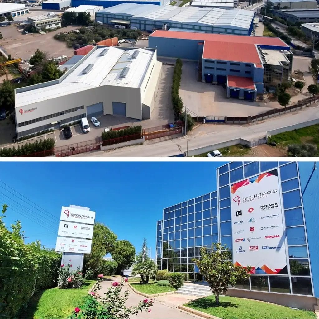 Η Georgiadis Colorsign διαθέτει ιδιόκτητες εγκαταστάσεις σύγχρονων προδιαγραφών, όπου στεγάζονται τα γραφεία, οι εκθεσιακοί χώροι και οι αποθήκες της εταιρείας. Ο εκτενής αποθηκευτικός μας χώρος μάς επιτρέπει να διατηρούμε μεγάλο απόθεμα προϊόντων, εξασφαλίζοντας άμεση διαθεσιμότητα και ταχύτατη εξυπηρέτηση των συνεργατών και πελατών μας σε όλη την Ελλάδα.